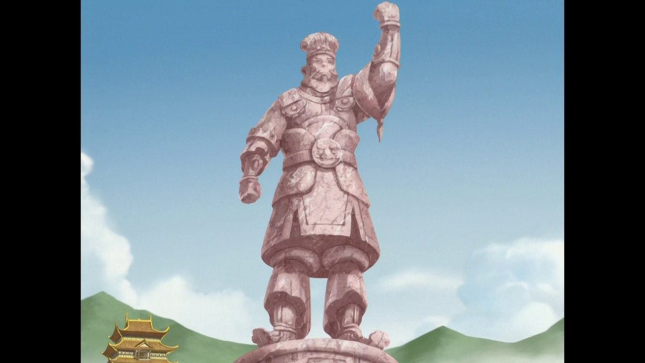 that she emerged from the temple and struck down Chin the Great.