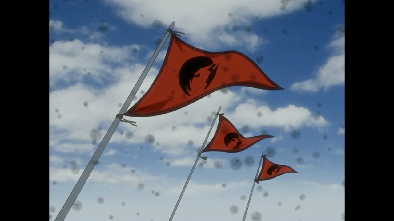 The main ship had flags with sea ravens on them.