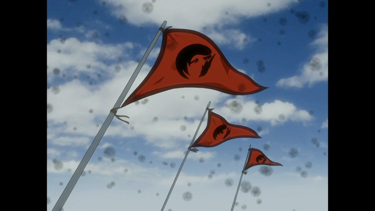 The main ship had flags with sea ravens on them.