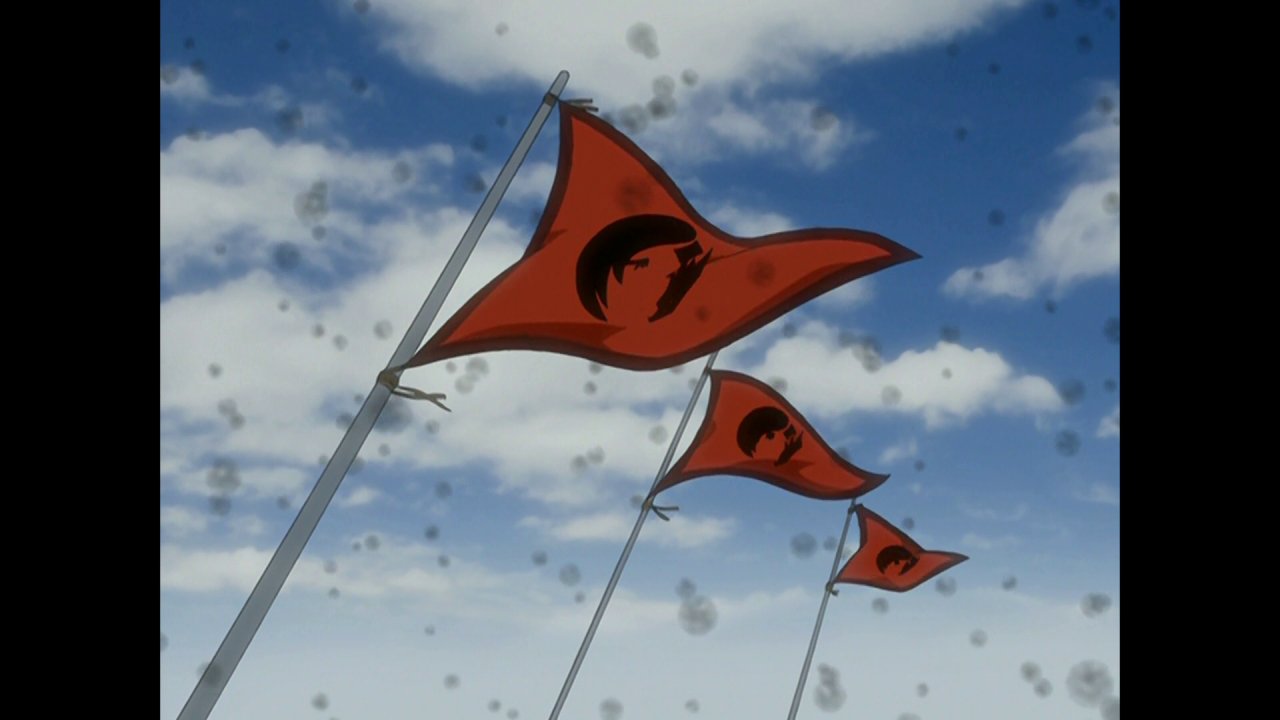 The main ship had flags with sea ravens on them.