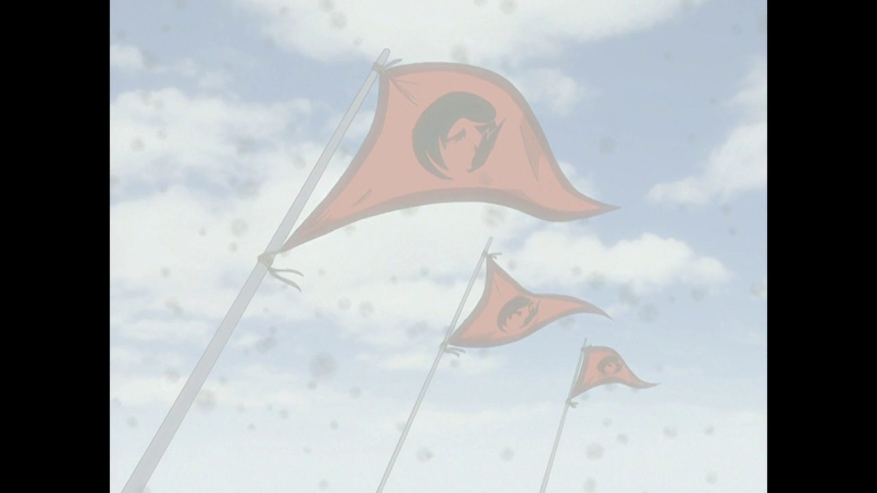 The main ship had flags with sea ravens on them.