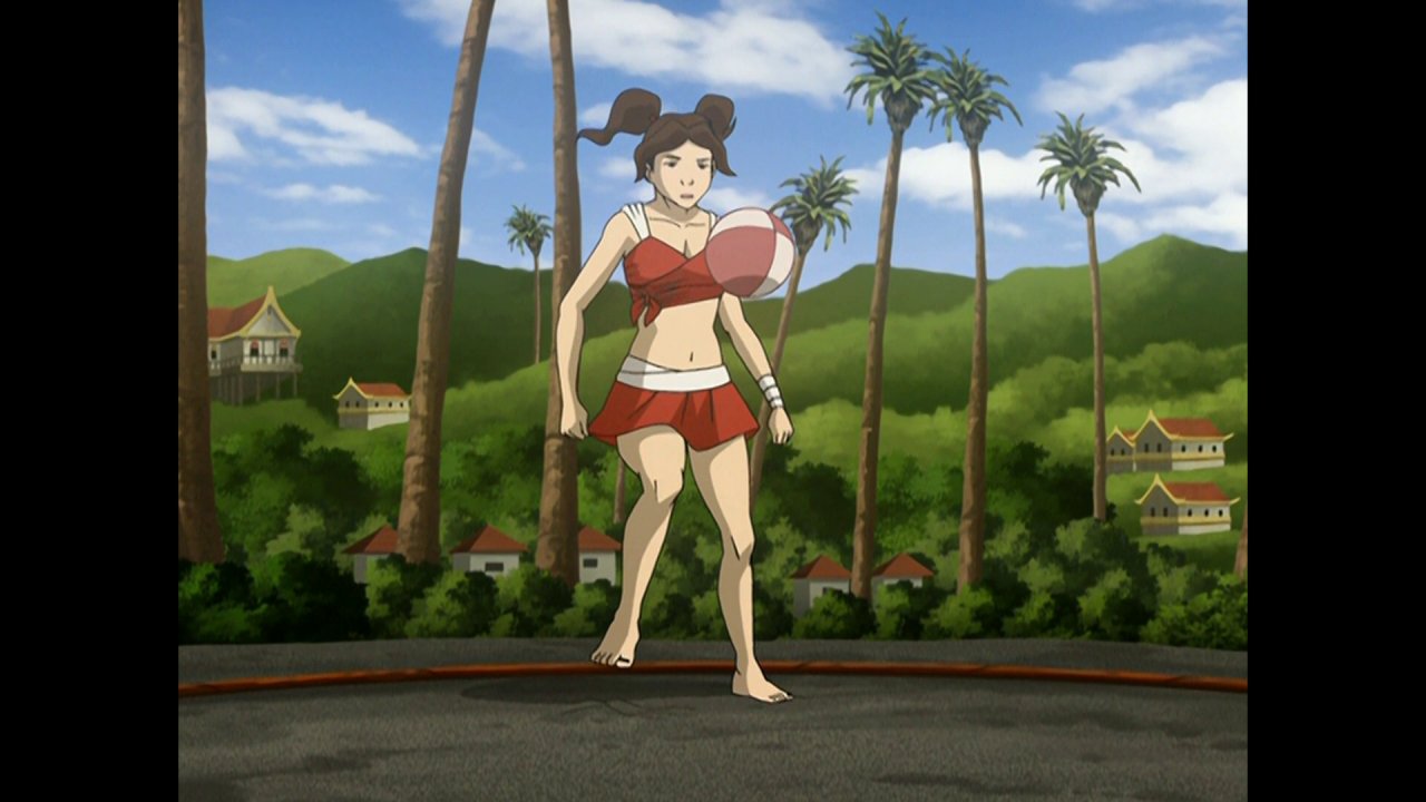 When she runs towards the ball